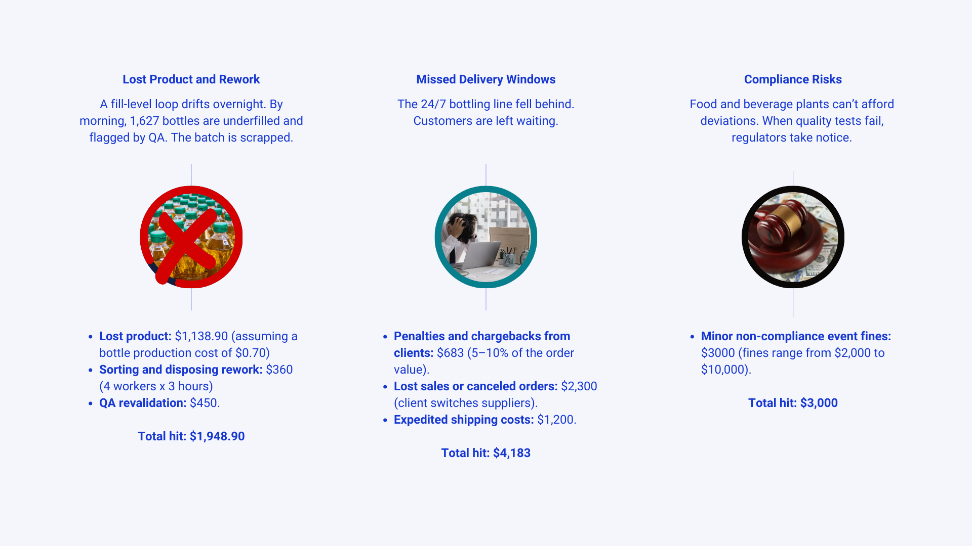 Line stoppages, wasted product, and missed delivery windows.
